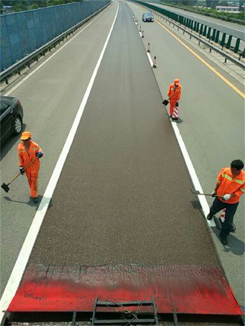 應(yīng)用范圍:     砂封層主要應(yīng)用于高速公路,一、二級(jí)公路瀝青路面的預(yù)防性養(yǎng)護(hù)。可以進(jìn)行美化路緣、路肩施工。經(jīng)過砂封層施工后可以改變新舊路面的外觀及顏色。施工說明:砂封層是一種層鋪的施工工藝。采用同步碎石封層設(shè)備將聚合物改性粘結(jié)材料和骨料金剛砂同時(shí)撒布施工的一種施工工藝。粘結(jié)材料應(yīng)選擇高濃高粘且具有一定滲透型和還原性。骨料需選擇耐磨的金剛砂。技術(shù)特點(diǎn):(1)常溫施工,無需加熱,節(jié)能環(huán)保。(2)用來解決瀝青路表面瀝青老化出現(xiàn)的貧油狀況。(3)解決原路面出現(xiàn)的麻面、松散掉粒、輕微裂縫等現(xiàn)象。(4)新路面可以起到防水的作用。(5)增加路面摩擦系數(shù)和耐磨性能。施工工藝:封閉交通→清理路面→病害處理→砂封層施工→養(yǎng)生→開放交通